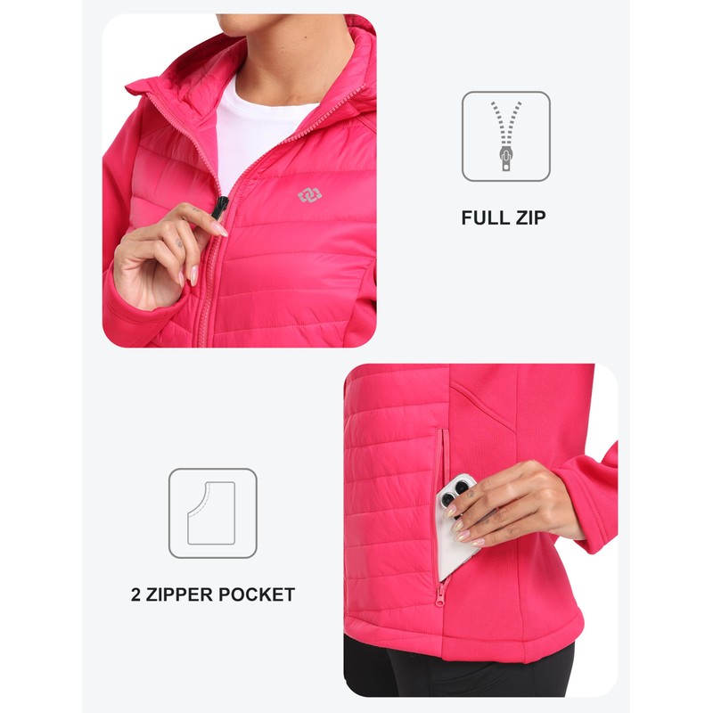 - 【Humanized Design】- With 2 zippered hand pockets, 2 inside pockets, the women's insulated running jackets is great for storing money, keys, phone, wallet, passport etc, providing great privacy and convenience for you.