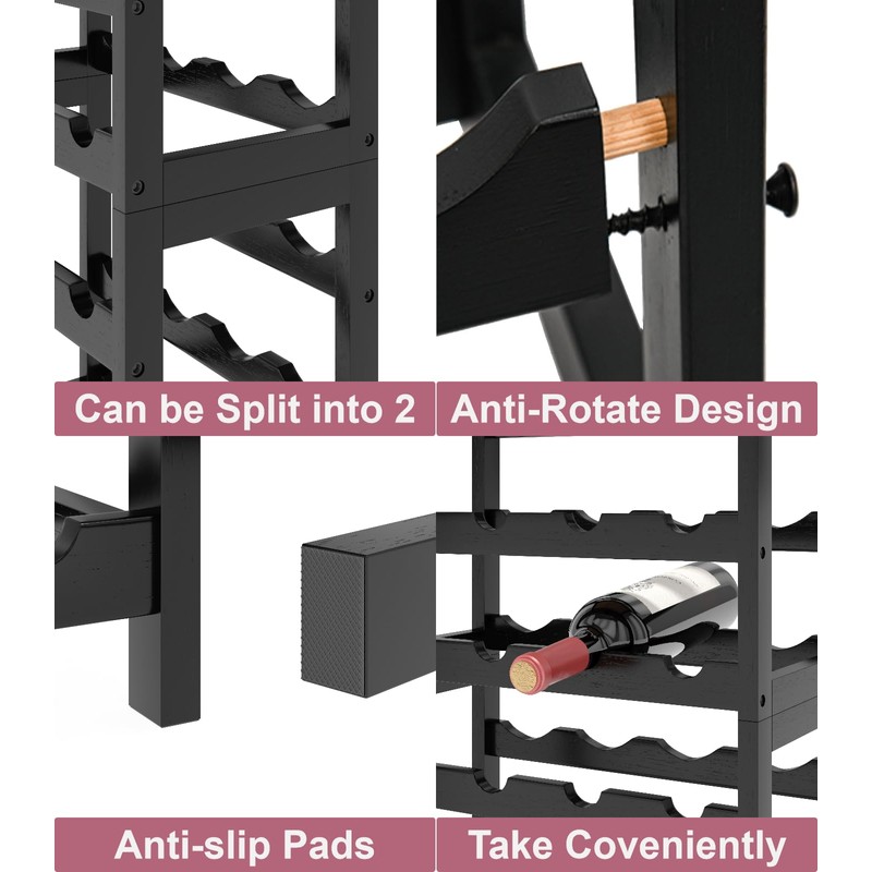 - 𝐍𝐚𝐭𝐮𝐫𝐚𝐥 𝐁𝐚𝐦𝐛𝐨𝐨: Crafted from 100% natural and thickened bamboo, this wine rack is robust, preventing deformation or wobbling. With multiple polishing processes and meticulous varnish treatment, its rounded edges, smooth surface, and moisture-proof finish enhance its overall quality.