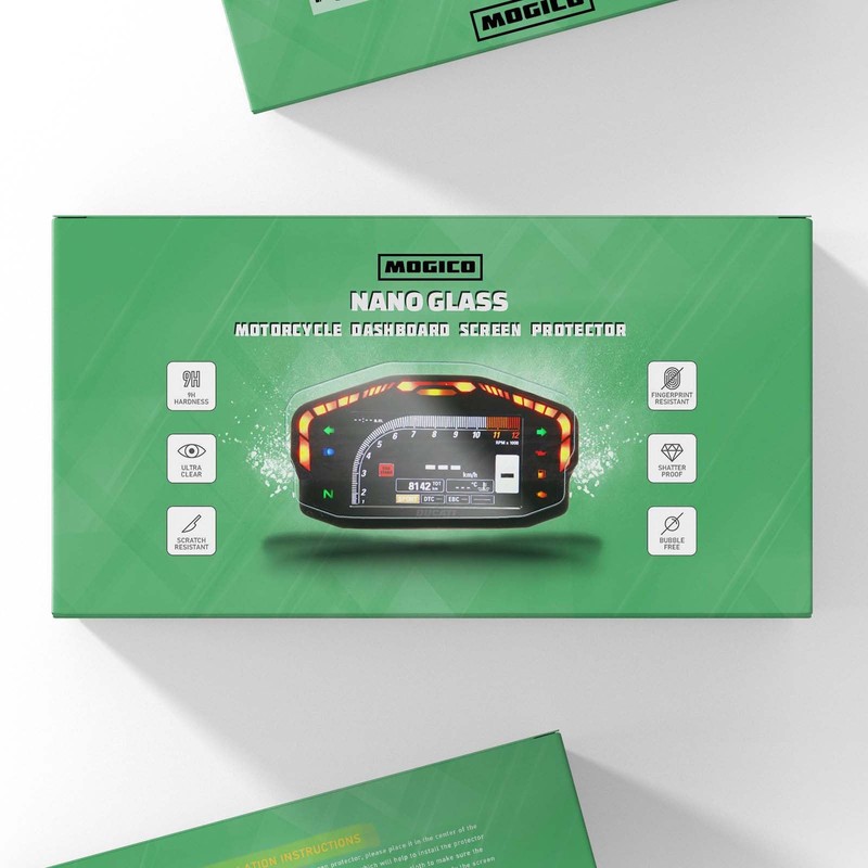 The benefits of Nano Glass are numerous. It boasts a 9H scratch-resistance, equivalent to that of tempered glass. It is also shatter-proof and highly transparent, ensuring that your screen remains clear and visible. Additionally, its flexibility allows it to fit on dashboards that are not completely flat, making it a versatile option for various motorcycle models. And with its ultra-thin design, it is up to half the thickness of tempered glass, providing a sleek and seamless look.
