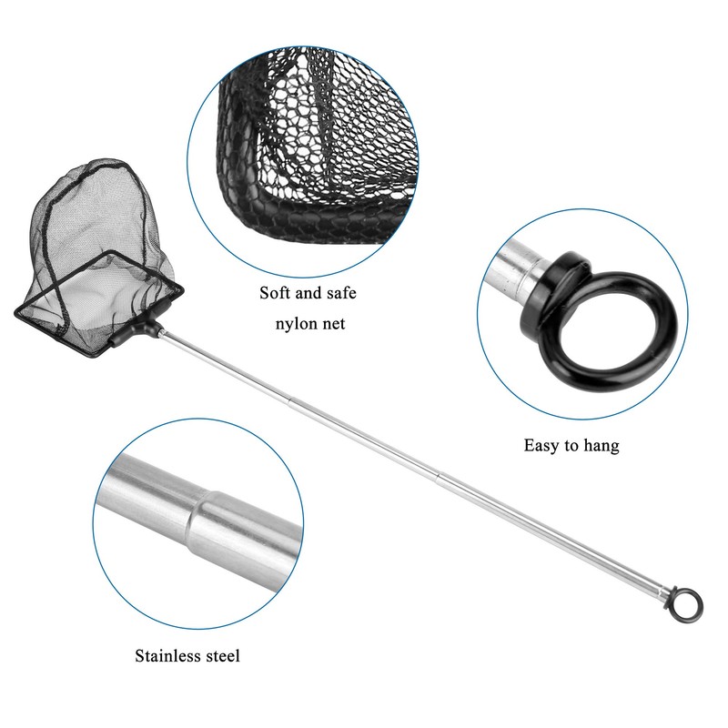 1.Extendable Telescopic Handle: designed with extendable handle for reaching to the bottom of deep fish tanks without get your hands wet.