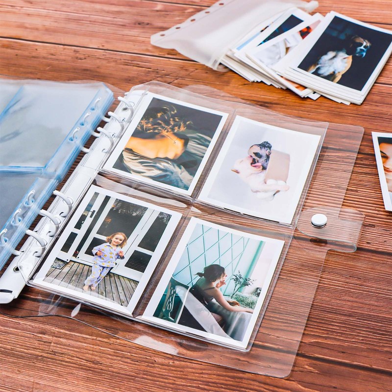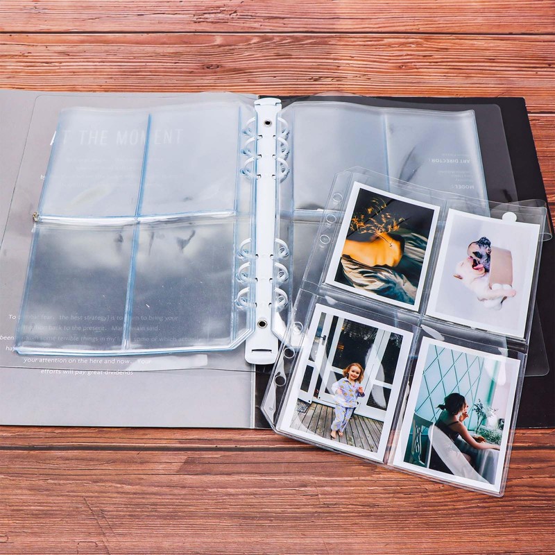 Dimension: A5 single-sided 4 pocket measures 210mmx149mm(8.27"x5.87") can hold 3.66"x2.56" or smaller Inside pages, 6 holes pre-punched page protector fits into A5 6-ring refillable budget binders, as picture show
