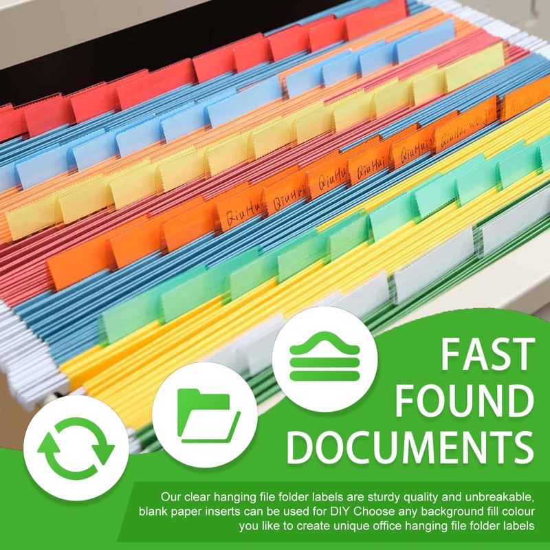 - Wide Range of Applications Used for sorting files and quickly identifying hanging files at home and in our office and is much easier to read. They slide easily into the folders and stay in place. Perfect for everyday storage.