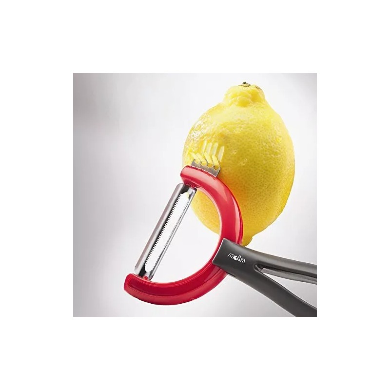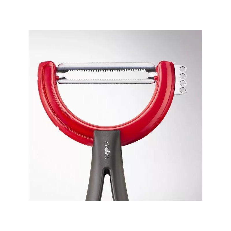 Moha Reversible Rotating Fruit Peeler with Zester - Red, Gray