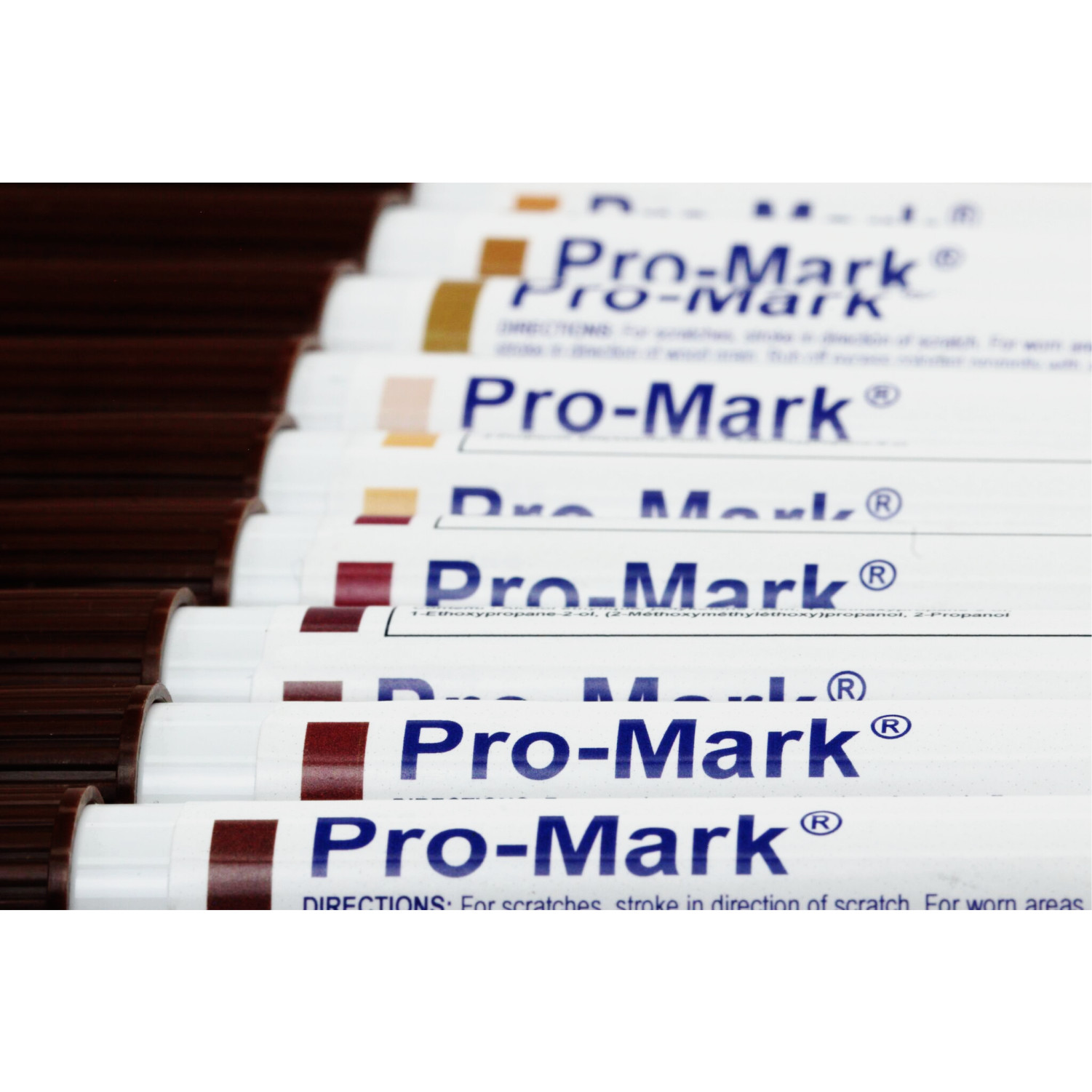 The Pro-Mark II capillary marker features excellent flow. Whether you need to touch-up 1 inch or 20 feet, the Pro-Mark II marker does it the first time and every time. The colors are the most fade resistant, the most resistant to color shift from topcoating and have the best bleed resistance. The nib offers superior flow along with the durability needed to do all normal repair work. The nib remains usable for the life of the marker. Marks equally well with the edge, the bottom or the tip. Good adhesion to most surfaces and resistance to polishes are built into the Pro-Mark II marker.