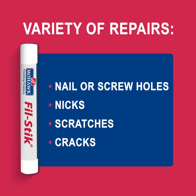 • Refresh Your Furniture! Mohawk Fil-Stik wood putty filler crayon helps to repair scratches, gouges and other imperfections in wood furniture, cabinets, trim and more