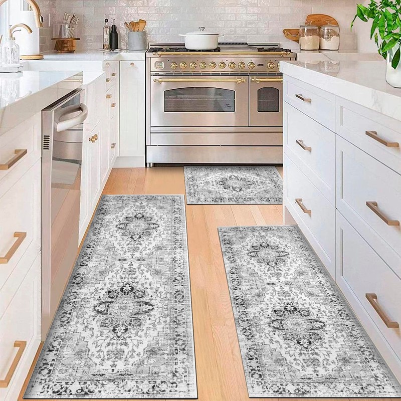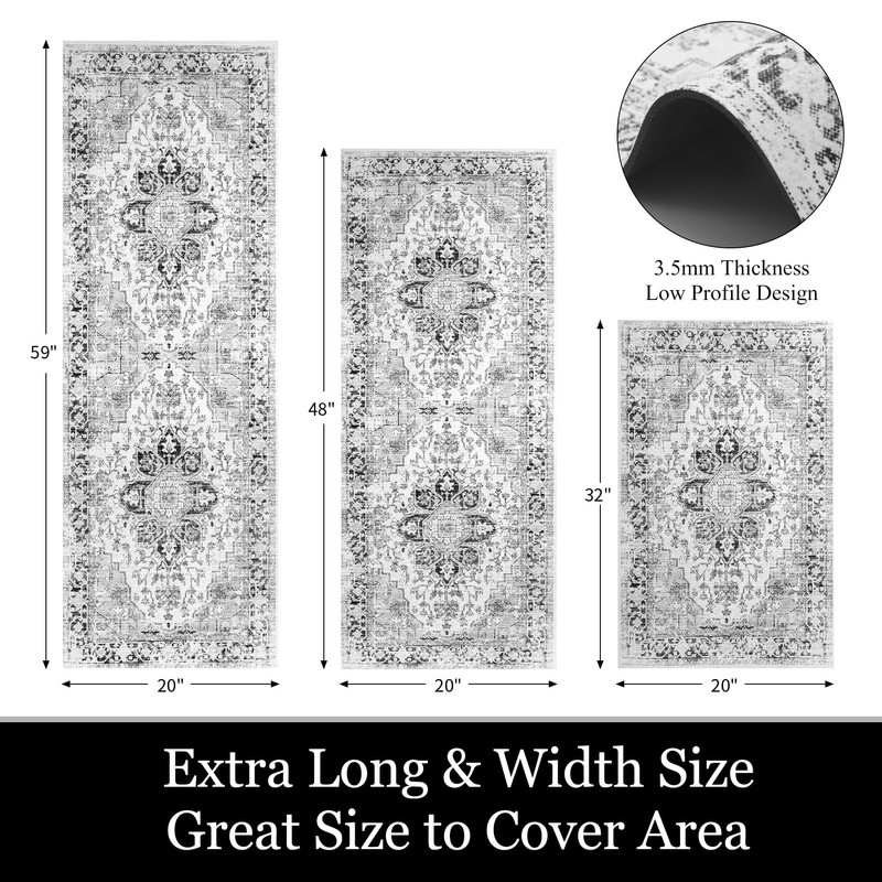 - 【Great Size】:Each package includes 3 piece kitchen mat sets,size:20”x32”+20”x48”+20”x59”, great size to cover your kitchen floor,also perfect for Laundry room to cover both the washer and dryer area.Classic vintage style with the vivid bright color and delicate pattern, adds more elegance and artistic to your home to create a warm atmosphere.