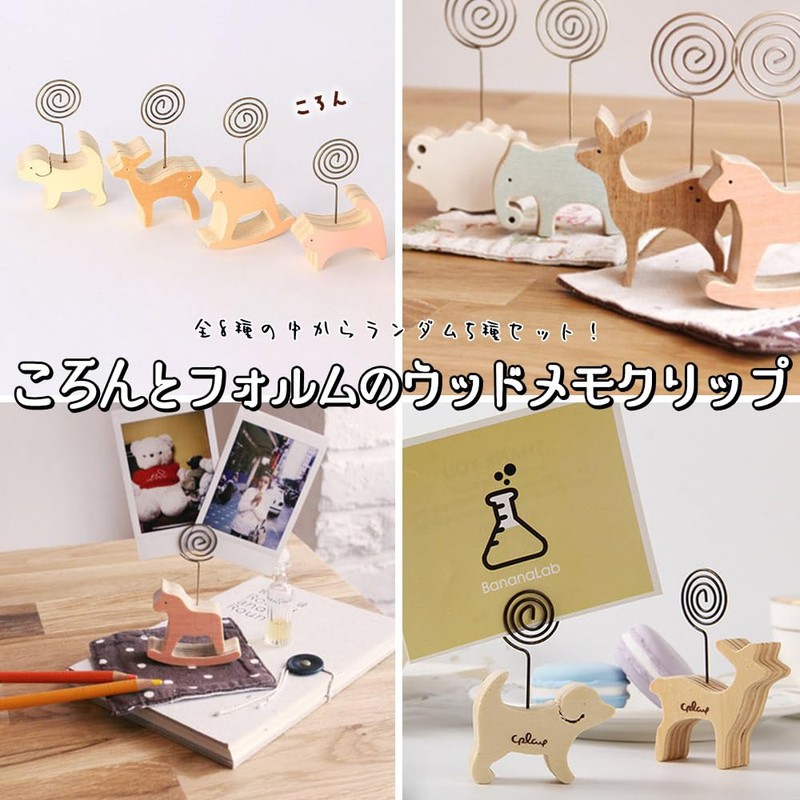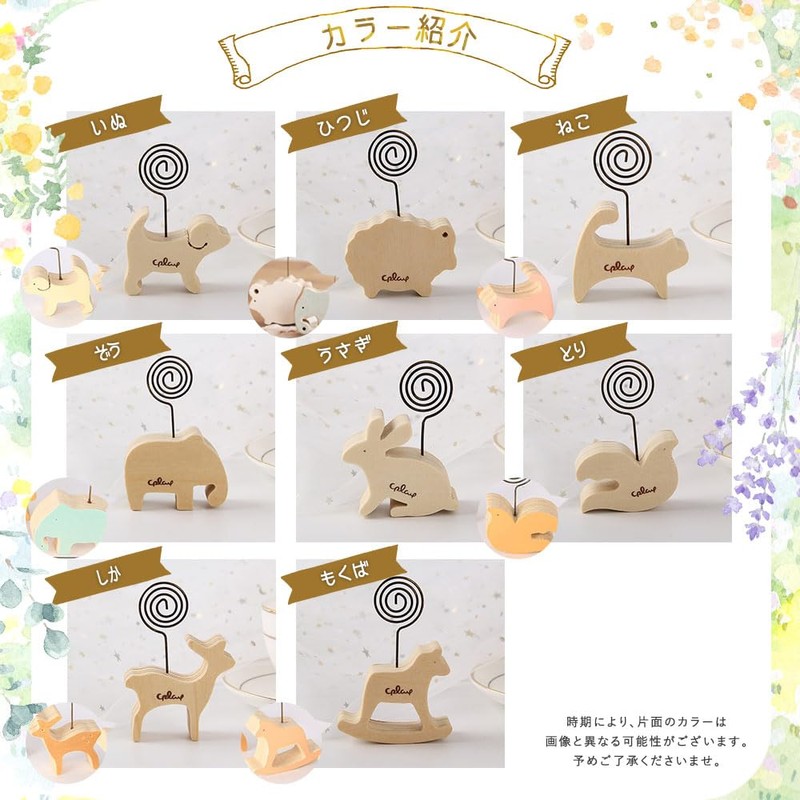 moin moin 2406mh0 Memo Clip Memo Holder Memo Stand Wood Animal Random 5 Piece Set / 2-Way Tabletop Decoration Photo Frame Card Holder Place Card Stand Animal Decor Cat Dog Wooden Horse Elephant Rabbit