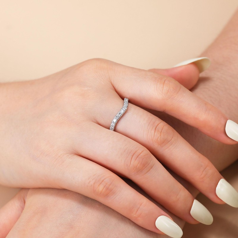 - 🎀Affordable & Classic Design: Moissanite is a kind of lab created diamond, it is a perfect alternative to natural diamonds, they are very sparkly, extremely durable and also conflict free, while it has the incomparable cost-effective than diamond. This curved wedding band is the classic design that will never go out of style, perfectly paired with different outfits in any occasions. Please choose the most suitable size when placing an order.