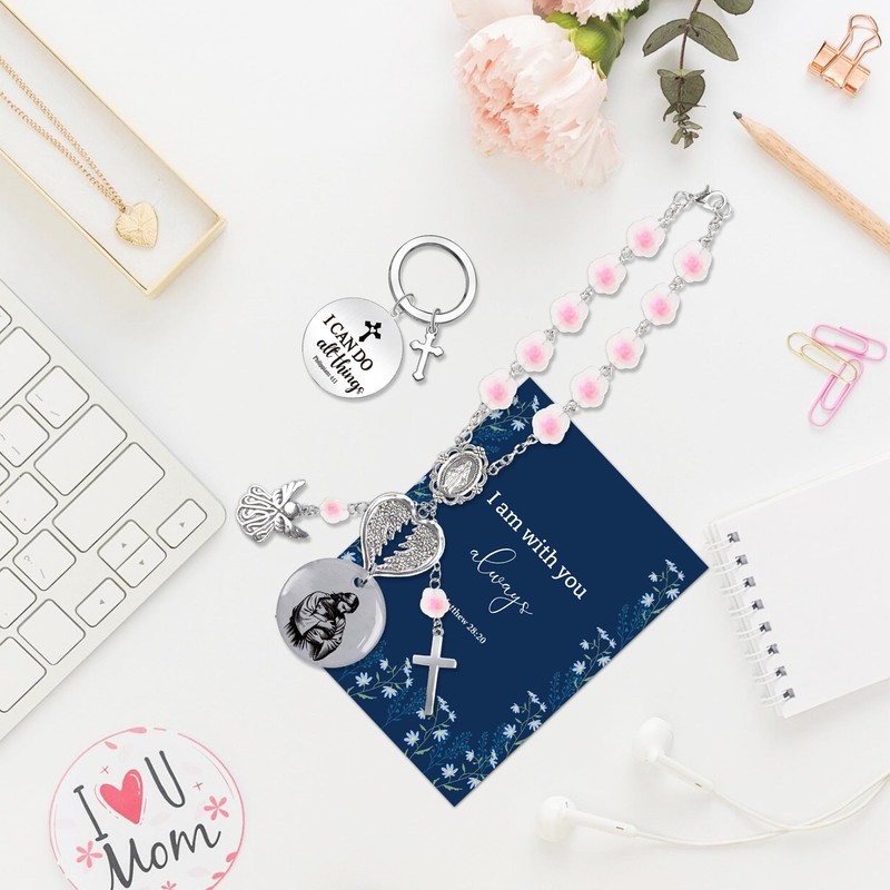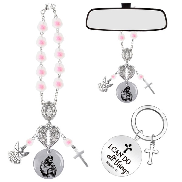 - What You Will Get: Includes 1 car rosary for rearview mirror, 1 scripture keychain engraved with Philippians 4:13, and 1 inspirational greeting card. A meaningful and ready-to-gift set for family, friends, or church members
