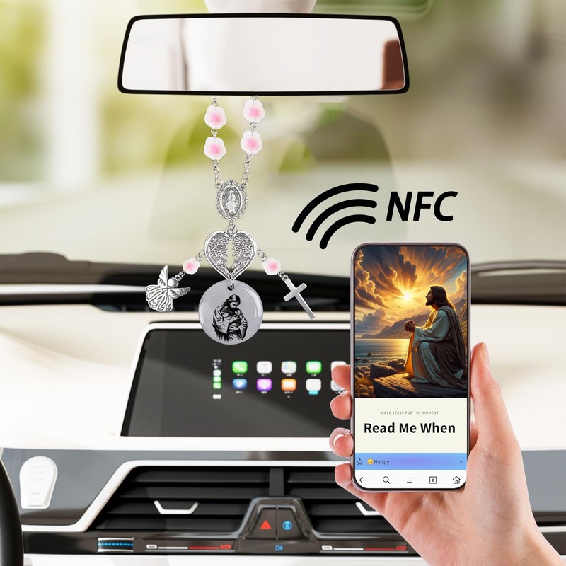 With a built-in NFC chip compatible with 95% of smartphones, simply tap the charm with your phone to instantly access a Christian website where you can explore Bible verses, daily prayers, and inspirational messages, bringing encouragement to every drive.