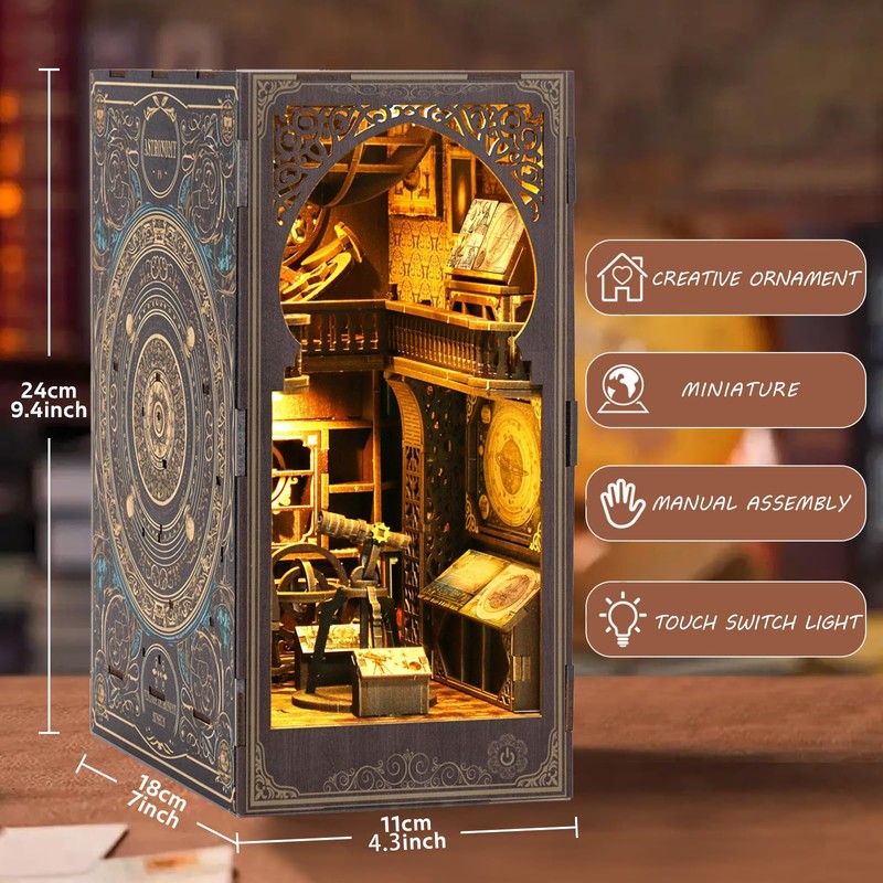 MOJINO DIY Book Nook Kit, Magic Dust Craft Set Adults with Furniture and LED Light, Bookend Model Kits for Adults, Building Gifts, 3D Wooden Puzzle, Book Corner (Museum of Astronomy)