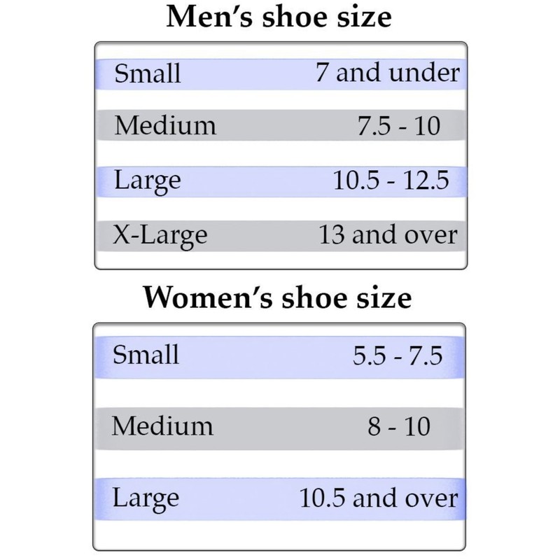 By adding the technology of graduated compression, this sports sock gives you the added benefit of improved circulation while performing any sport or leisure activity. You will notice your legs feel better at the end of any activity. Made with Cool-Max, a fiber that pulls moisture from the skin to be absorbed to the outside of the sock. It is thicker than a standard nylon/lycra sock, with additional thickness around the entire foot area, giving a new level of comfort in a support sock. Ideal for athletics, walking shoes, golf and any casual or sporting activity. The thickness is about that of an athletic sock, so no need to worry about larger sized shoes. **Order by show size Men:** Small: 7 & under Medium: 7.5 - 10 Large: 10.5 - 12.5 X-Large: 13 & over **Women:** Small: 5.5 - 7.5 Medium: 8 -10 Large: Over 10.5
