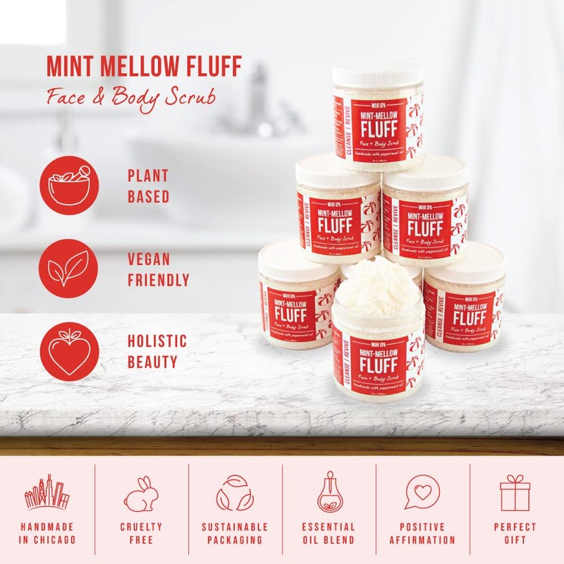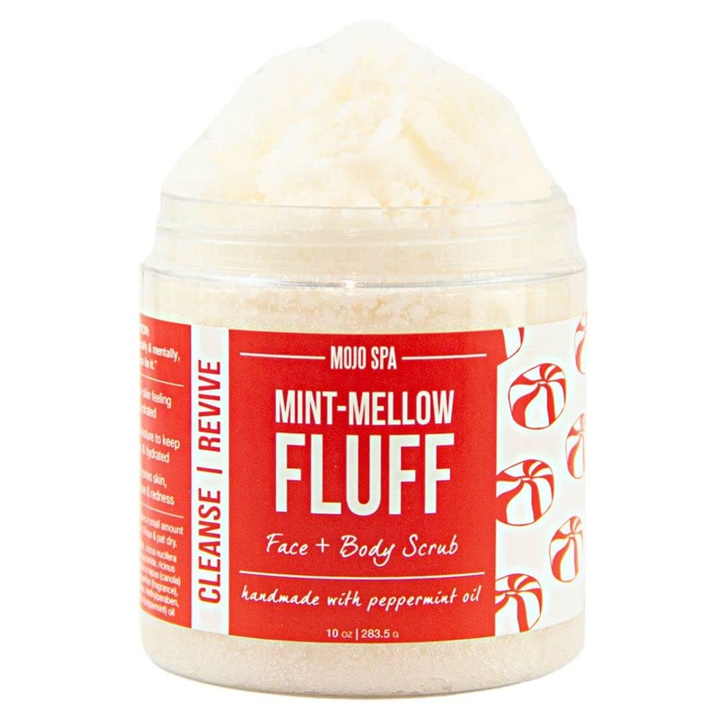 Mojo Spa Mint Mellow Fluff Face and Body Scrub | Peppermint, Vanilla Scent | Moisturizing Sugar Based Exfoliator | 10 oz