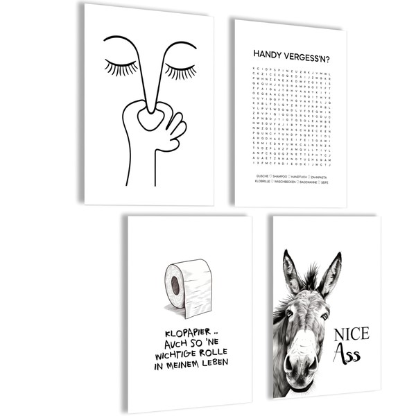 - Quality from Germany: our timeless bathroom posters are printed on high-quality paper with a matte surface. The toilet pictures are delivered unrolled in a cardboard gift folder