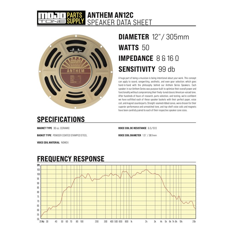 Mojotone Anthem 12" Guitar Speaker 8 ohm