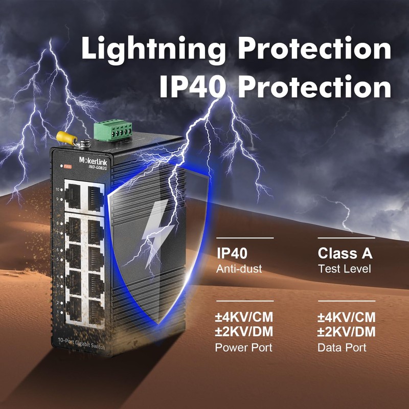 - IP40 protection grade, working temperature -40~75°C(-40~185°F), super robustness, anti-lightning, anti-static and anti-overload protection, adapt to various harsh environments