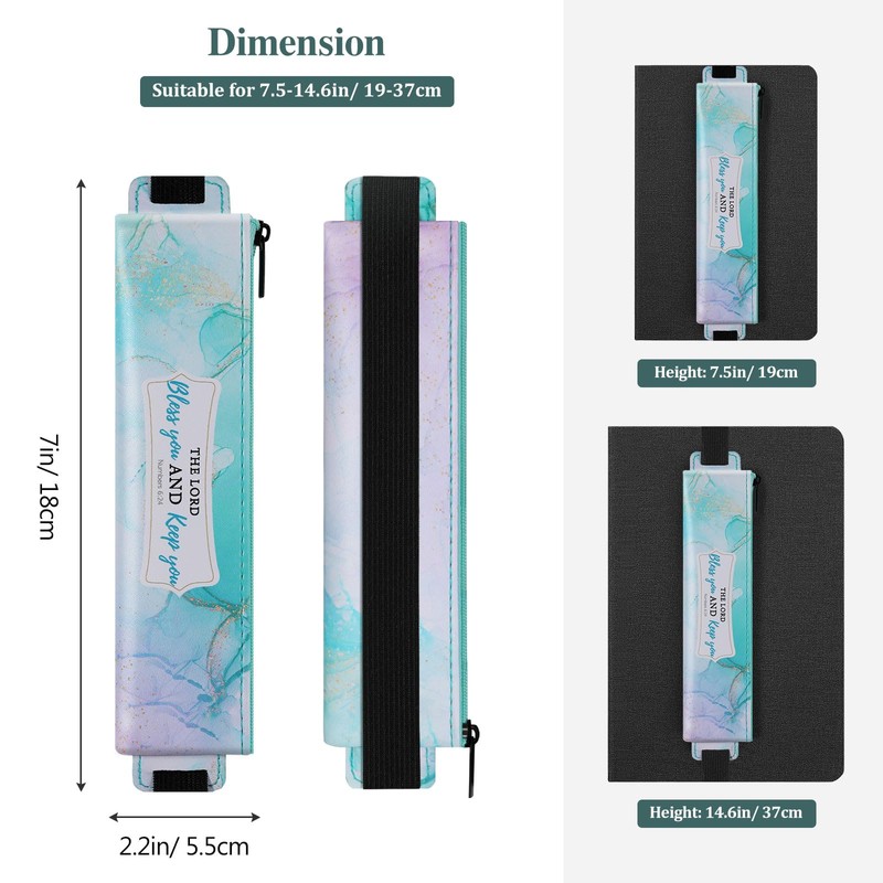 - Pencil case with elastic band: This pen bag is equipped with an adjustable elastic band that makes it easy to attach and remove. Simply attach the elastic band to your notebook or book and it stays securely in place, so you can easily take notes at any time. Quickly remove the pen to capture every moment of inspiration! (Elasticity range: 7.5-14.6 inches/19-37 cm)