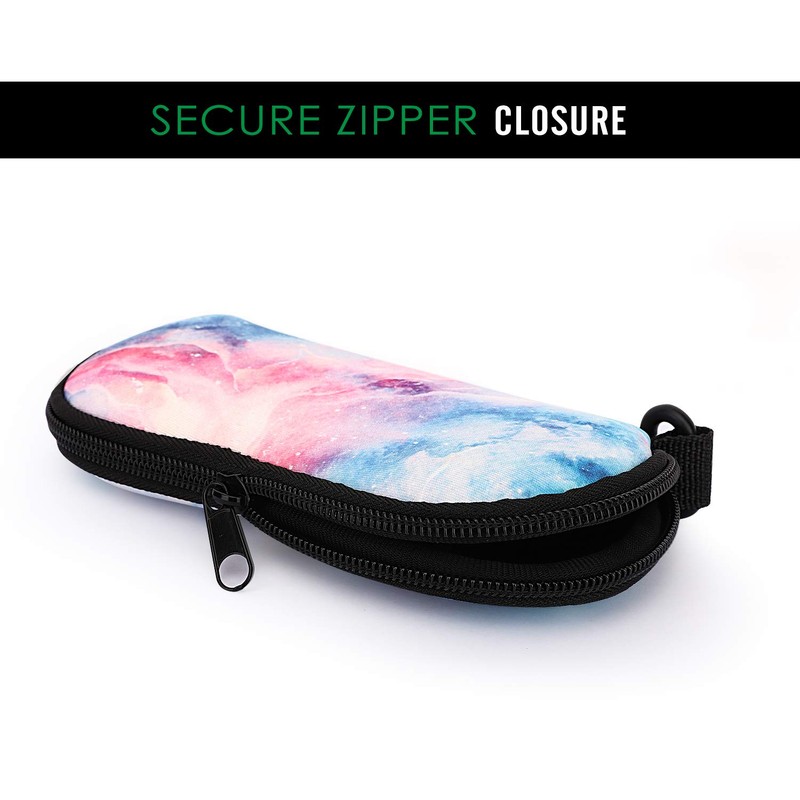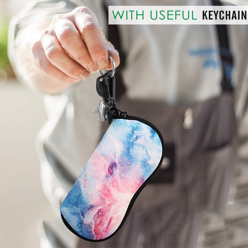 MoKo Sunglasses Soft Case, [Ultra Lightweight] Neoprene Zippered Eyeglass Storage Case with Clip for Eyewear, Frames, Carrying Pouch Case Makeup Bag for Keys, Pencils, Cards - Dreamy Nebula