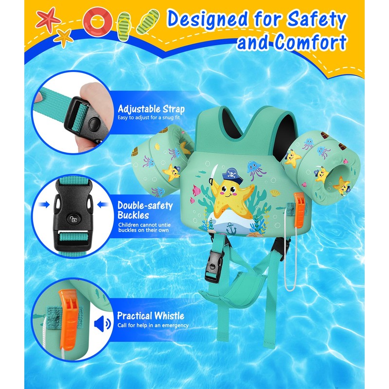 - Widely Applicable: The arm floaties provide enough buoyancy to keep children floating safely and balanced in the water. It is suitable for use at the pool, beach, boat or lake. With whistle for emergency call, the reliable toddler swim vest keeps kids safe and allows them to swim and play freely. Note: Children must be supervised by an adult when using the swim vests.