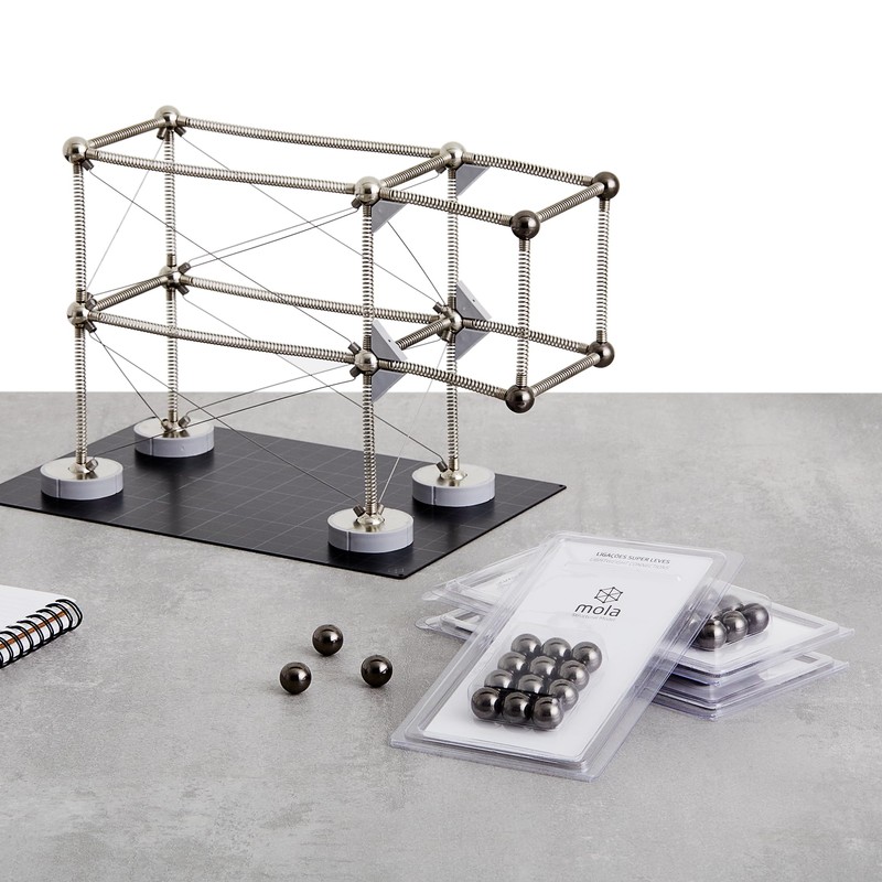 Have more freedom to create with the Lightweight Connections. 65% lighter than the standard Mola connection, you can use them to assemble higher structures and explore buildings with larger spans. Build taller, lighter, and more complex structures. Lightweight Connections require at least one Mola Structural Kit to use and are compatible with: Mola Structural Kit 1 Mola Structural Kit 2 Mola Structural Kit 3 Adjustable Length Bars