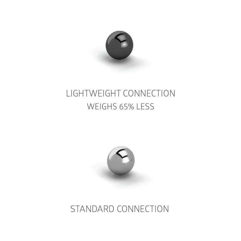 • 65% Lighter Than Standard Connections – Enjoy greater flexibility and reduced weight while maintaining the same size and compatibility as standard Mola connections.