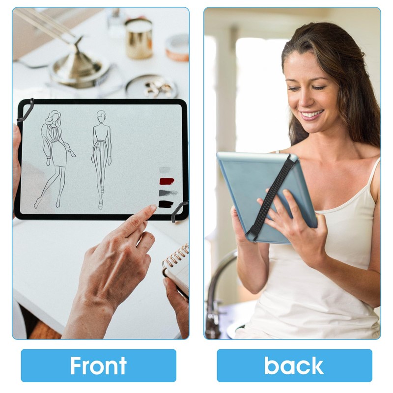 - 【Universal Fit Design】These tablet hand straps accommodate devices from 7.5" to 13" tablets, working with or without cases. The 7.5" unstretched length extends to 13.7" for flexible positioning, while the polyester material maintains elasticity through stretch cycles without deformation.