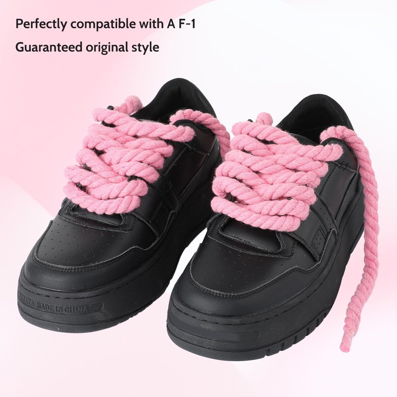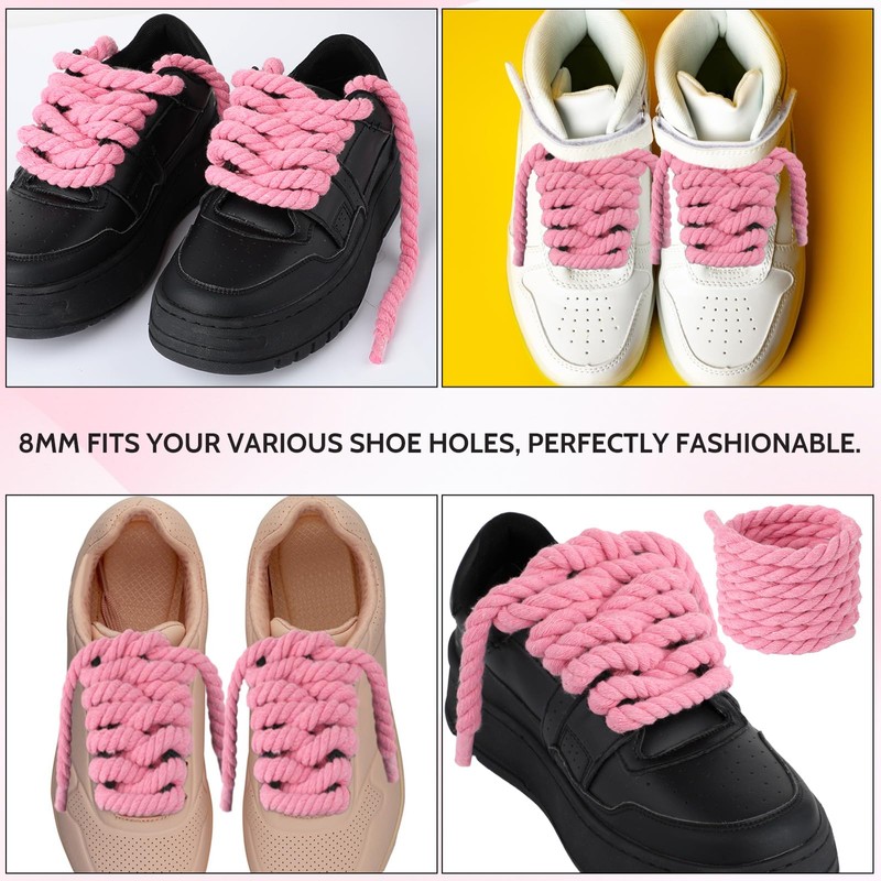 - Perfect Size: 1 pair of 8mm thick pink rope laces, 59" (150cm) long, perfect length to replace A F-1 laces, to tie 6-8 eyelets in adult sizes (no boot style). If there is excess length that does not need to be cut off, it can be left, knotted, or covered with remaining lace as desired.
