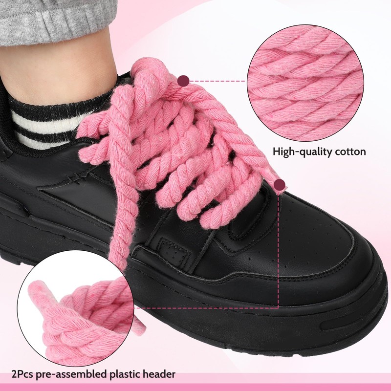 - Durable Material: These thick laces are made of high-quality cotton to resist daily wear and tear for extra durability. Thick laces are soft to the touch and make it easier to fit your sneakers. Choose quality products for your sneakers. Just slightly change the grommet thick rope strap for a perfect fit, ensuring a secure fit after installation.
