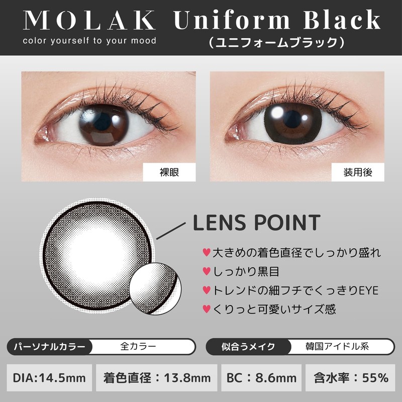 【メーカー公式店舗】[ 宮脇咲良プロデュース&イメージモデルカラコン ] MOLAK(モラク) 1DAY 10枚入り ユニフォームブラック [-5.50]