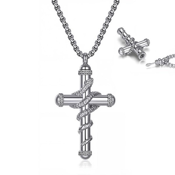 MOLAYES Silver Cross Cremation Urn Necklace for Men Women Memorial Necklace for Ashes of Loved Ones or Pets, Rust-Free Waterproof Cross Necklace Jewelry 24 Inche