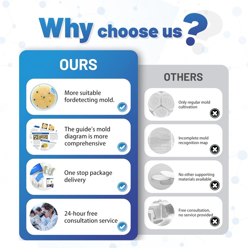 - Fast and Reliable Mold Detection - This mold test kit for home includes a mold identification guide, delivering quick and reliable results. Easily identify and understand the type of mold present in your home, enabling prompt action. We also offer free laboratory analysis—simply send us photos of the mold, and our team will analyze it for you 24/7