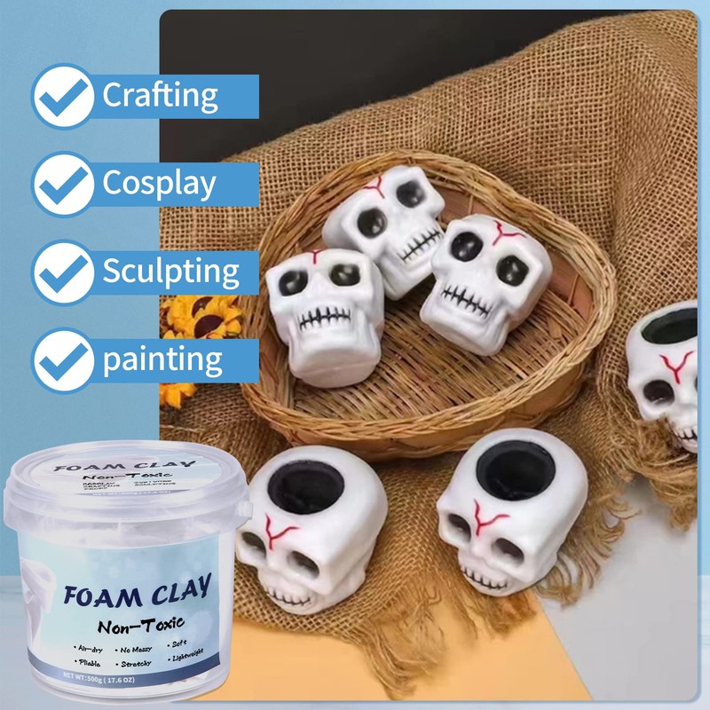 Moldable Cosplay Foam Clay, 500g Lightweight Soft Air Dry Clay Suitable for DIY Creative Art Design/Creative Crafts Sanding or Shaping with Sculpting Tools,White