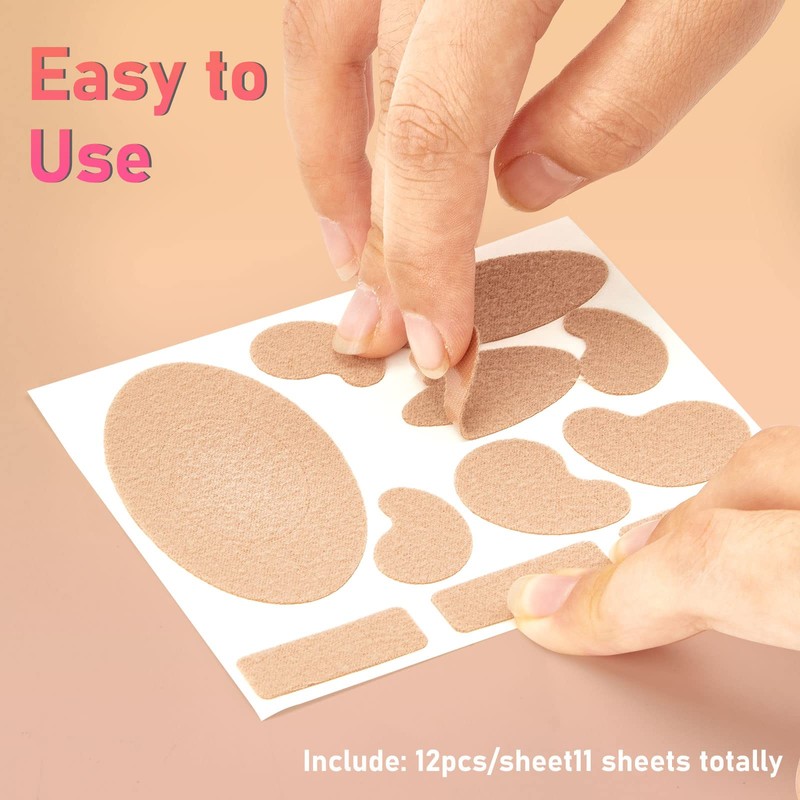 Moleskin Strips with Adhesive Blister Prevention Pads Mole Skin Tape Stickers for Feet Heel Shoes Padding,12 Sheets of 11 Shapes