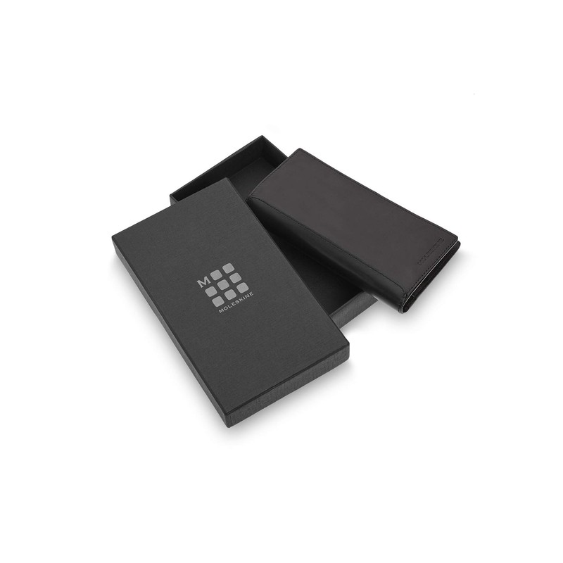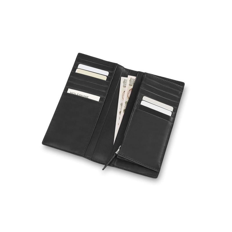 Moleskine - Classic Slimfold Wallet, 100% Leather Card and Ticket Holder, Slimfold Wallet with 15 Pockets for Credit Cards and Coin Pocket, Size 9 x 19 x 1.5 cm, Black