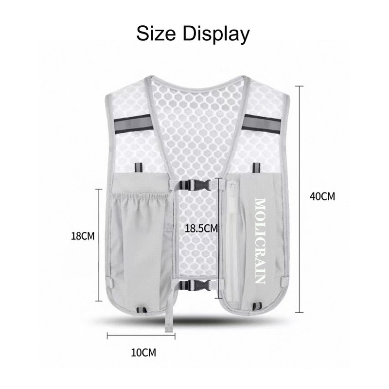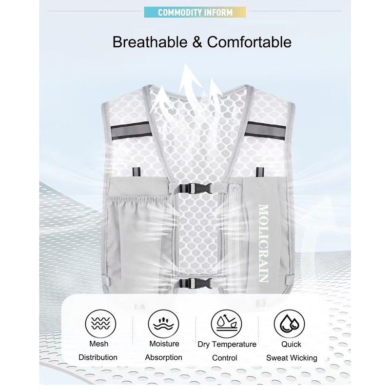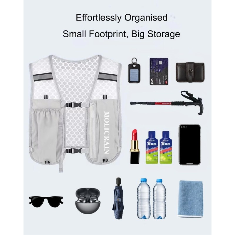MOLICRAIN Running Hydration Vest Backpack, Lightweight & Breathable Running Vest Phone Holder for Women Men, 5L Hydration Pack for TrailRunning Hiking Cycling Marathon(Grey)