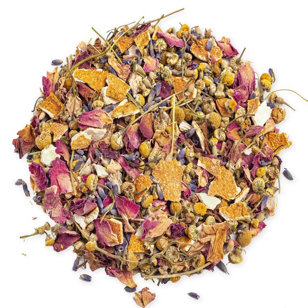 - DISFRUTA: De un sencillo balance de refinamiento relajante con nuestra exquisita mezcla de sutiles botones de manzanilla con aromáticos pétalos de lavanda y un suave toque cítrico. Elaborada artesanalmente con productos cosechados en campos orgánicos mexicanos. Ingredientes: Lavanda, Manzanilla, Corteza de Naranja y Pétalos de rosa.