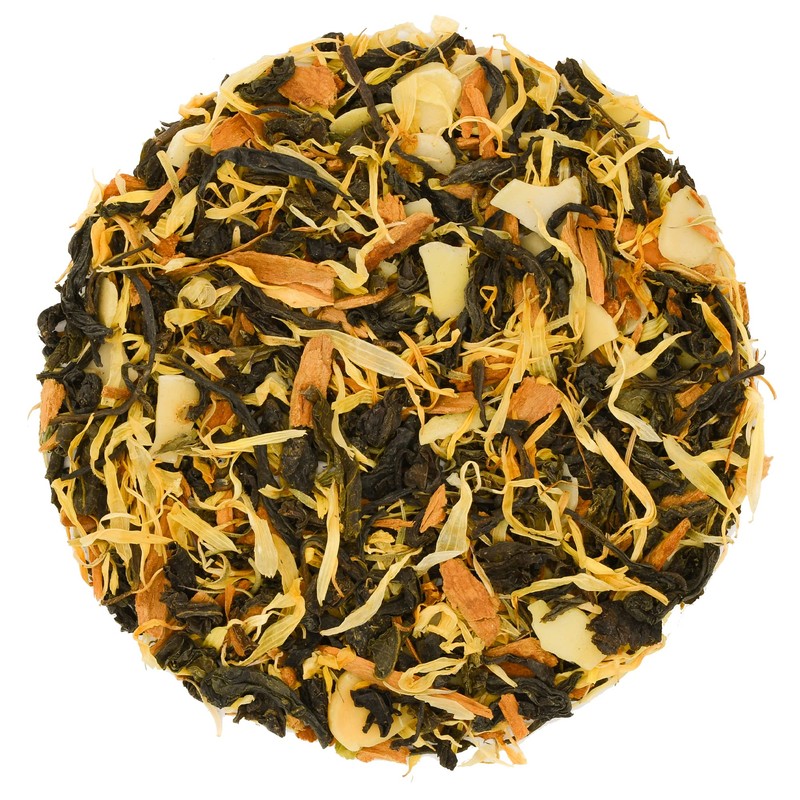 - PRUEBA: El envolvente sabor de un té verde en hoja entera proveniente de la India con una rica combinación de manzana, canela y un toque de caléndula silvestre; Ingredientes: Té Verde, Caléndula, Manzana y Canela