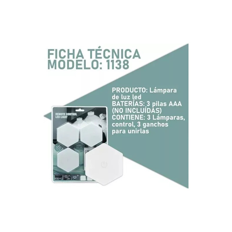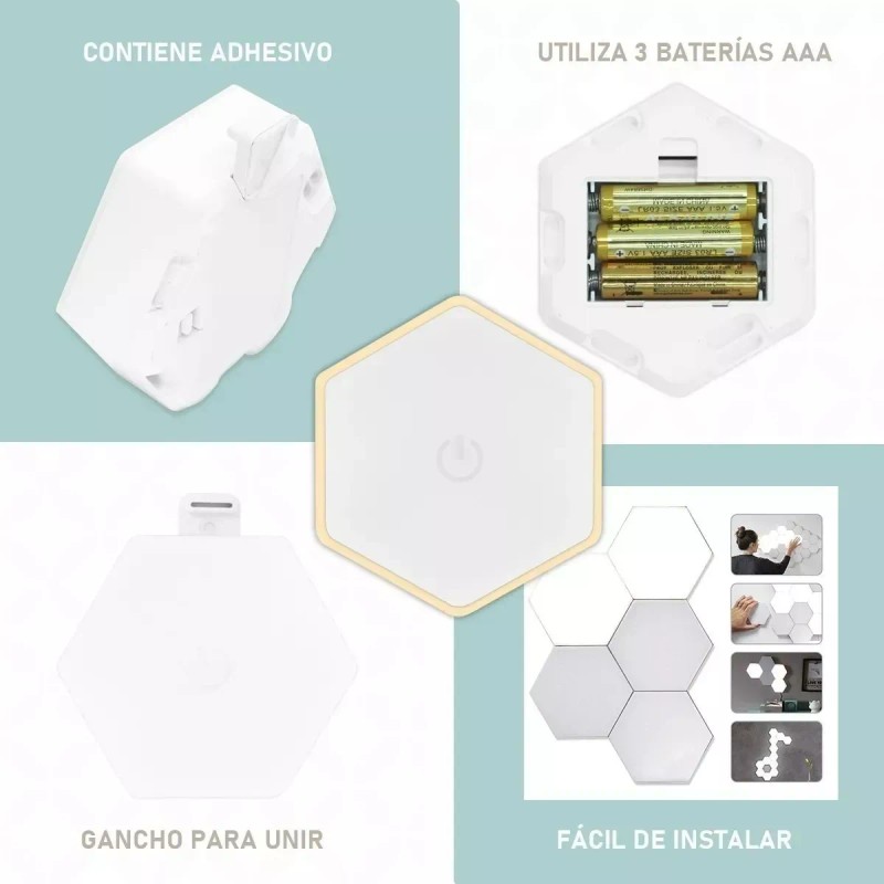 Molin Dollins Luz Led Lampara Hexagonal Touch, Union Entre Ellas Pared