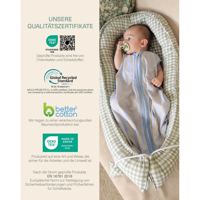 Molis&co. Baby Sleeping Bag 0.5 TOG Size: 70 cm (0-6 Months) Ideal for Summer Kai. 100% Cotton (Oeko-Tex 100).