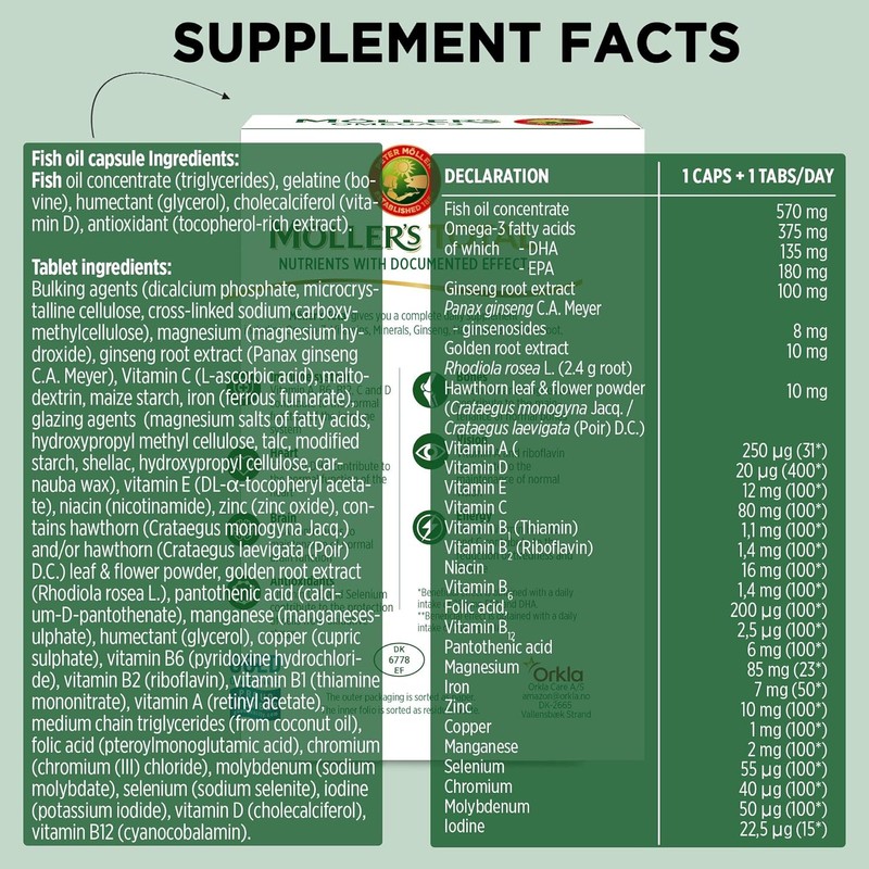 - SUPPORTS THE WHOLE BODY - Möller’s Total one-a-day balanced formula with active ingredients supports the Immune System, Heart, Brain, Cells, Bones, Vision and helps maintain Energy level