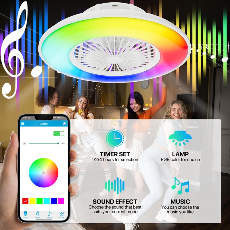 - Ceiling Fan with Built-in Bluetooth Speaker - Our RGB ceiling fan not only circulates air but also creates a rhythmic, colorful atmosphere with its built-in speaker and RGB light effects. It’s perfect for parties and gatherings, sure to impress your guests.