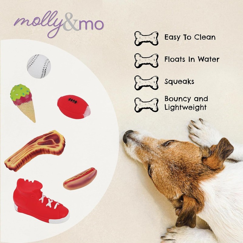Molly & Mo Squeaky Dog Chew Toy Set (Baseball Red)