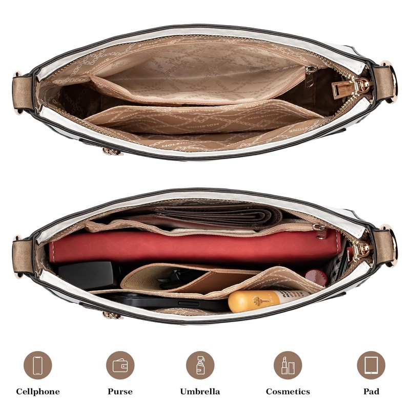 - 【Size information】Crossbody bag size: 25 x 25x 7cm/9.84" x 9.84" x 2.76" ; Detachable and adjustable shoulder strap length range: 90 - 142cm/35.43" - 55.91". The handbag can hold various sizes of wallets, cell phones, makeup, skin care products, keys, sunglasses, cell phones and more. This can meet your storage needs for most of your daily items.