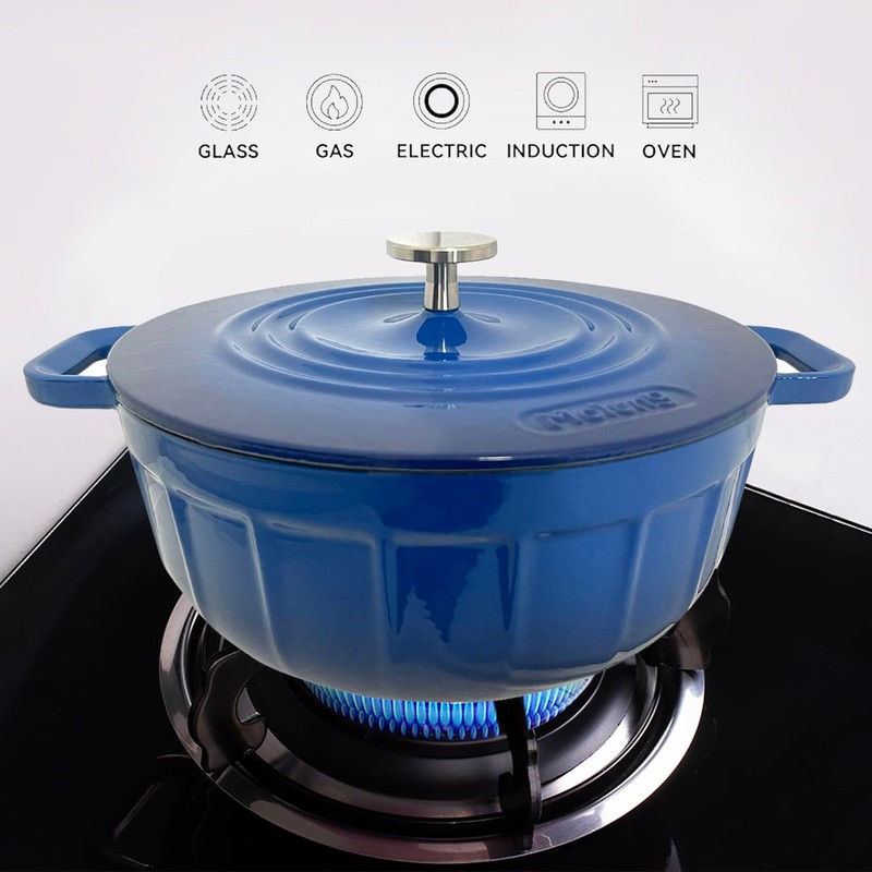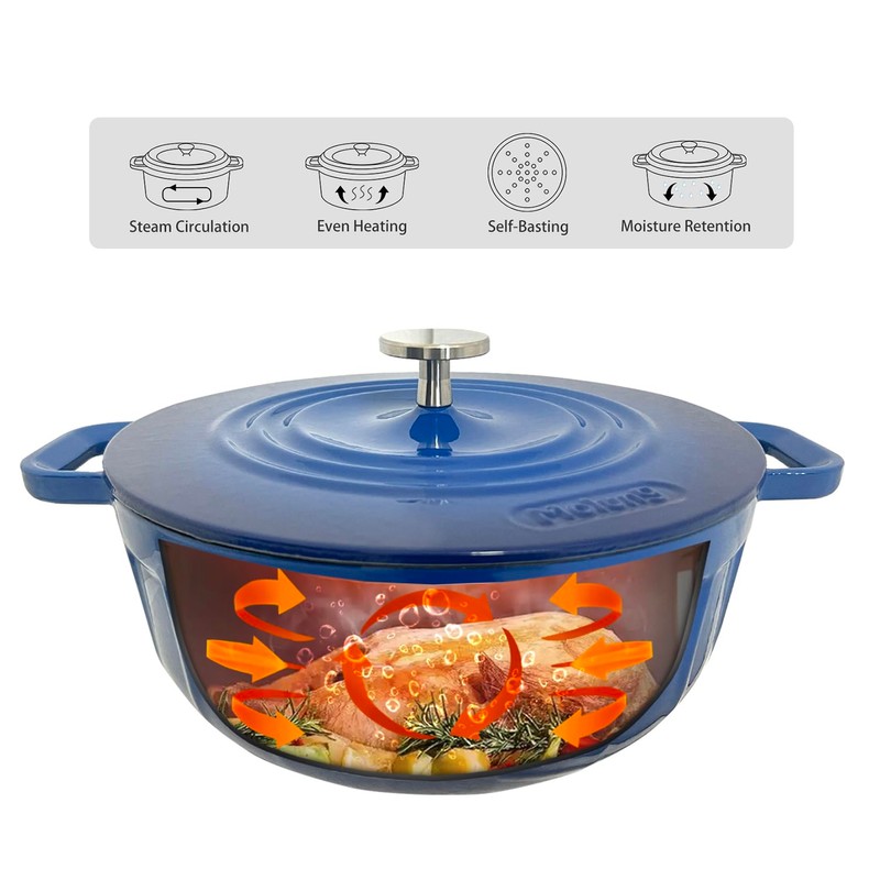 Molung 5 Quart Enameled Cast Iron Dutch Oven with Lid - Heavy Duty Casserole Pot – For Roasting, Baking, Stewing - Enamel Coated Cookware (Skydeep Blue)