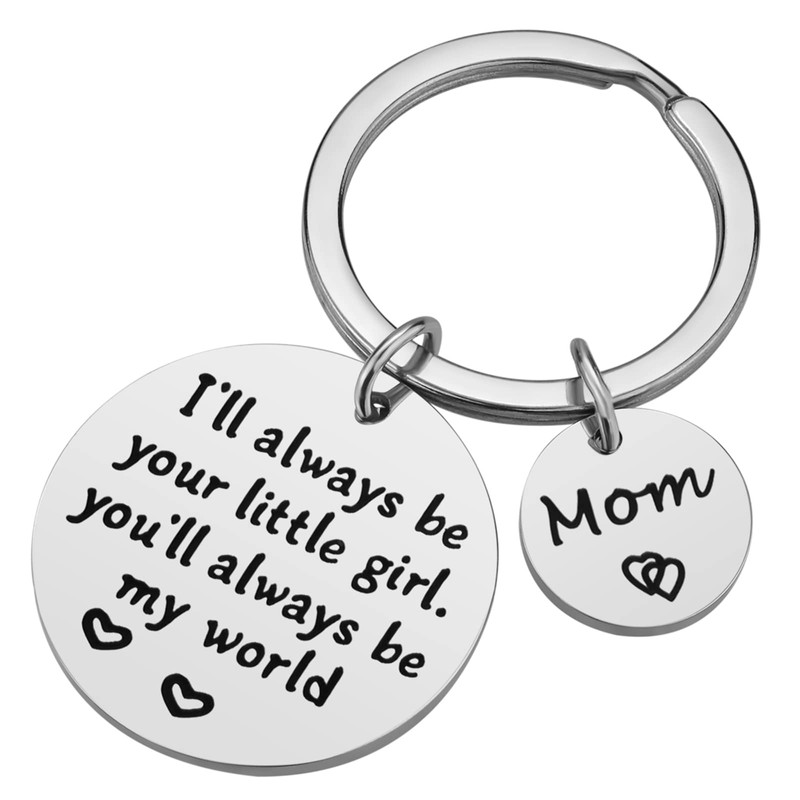 - ♥ MOM KEYCHAIN FROM DAUGHTER: Double Sided Design - this keychain front engraved with " I'll Always Be Your Little Girl, You Will Always Be My World " words, and the back with " Best Mom Ever " words.