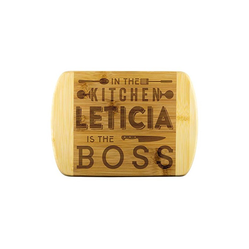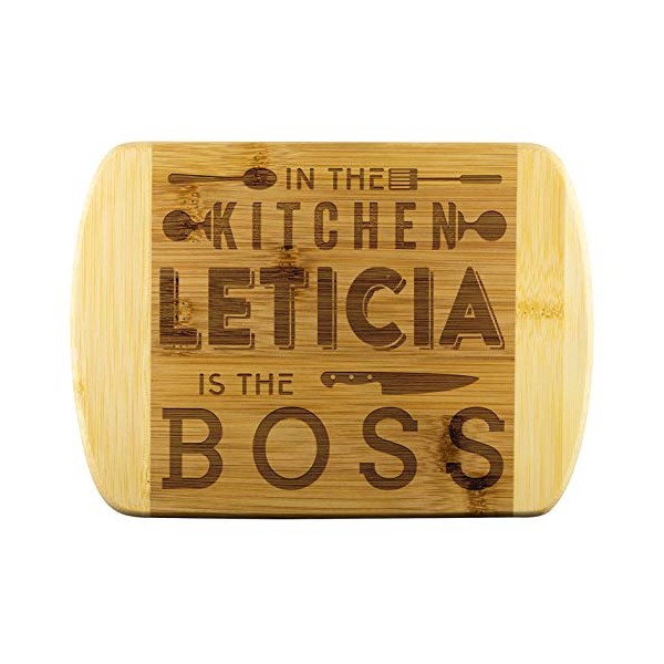 Mom To Be Gifts - In The Kitchen Leticia Is The Boss - Mothers Day Gifts, Gift Ideas For Mom, Funny Cutting Board Engraved Bamboo Chopping Block, Bamboo Engraved Cutting Board