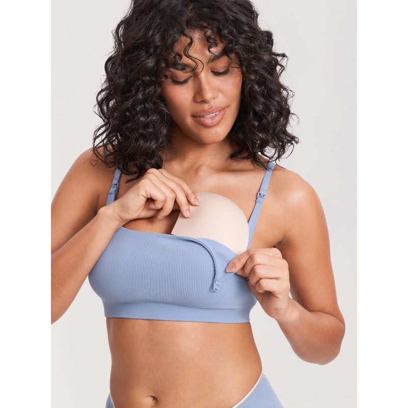 MOMANDA Women's Nursing Bras Ribbed Seamless Bralettes Support Sports Bra for Breastfeeding Wireless Maternity Sleep Moonlight Blue Medium