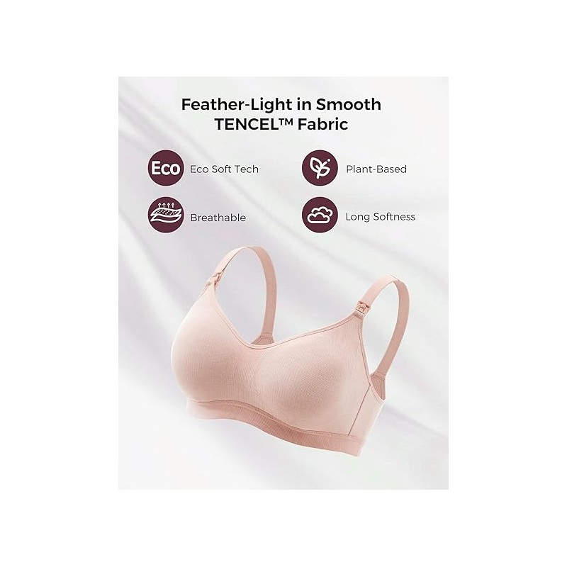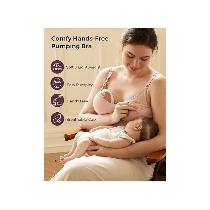 Momcozy Hands-Free Pumping Bra, Wireless & Seamless Breast Pump Bra, Breathable Tencel™ Fabric & Fully Fixed Cups