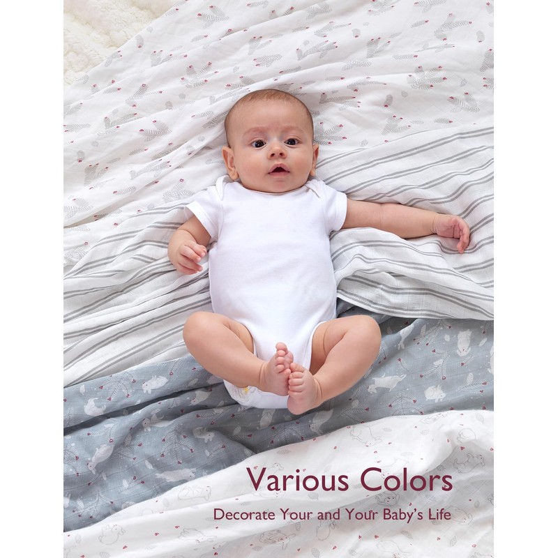 - 【Large, Versatile and Stylish】The set includes two large 47” x 47” (120 x 120 cm)swaddle blankets, providing ample space for wrapping and swaddling. They can also be used as swaddling, changing pad, nursing cover, stroller cover, lightweight swaddling blanket, sun shade, picnic or tummy time blanket and more. The blankets come in unisex solid and patterns, suitable for baby girls and boys alike.