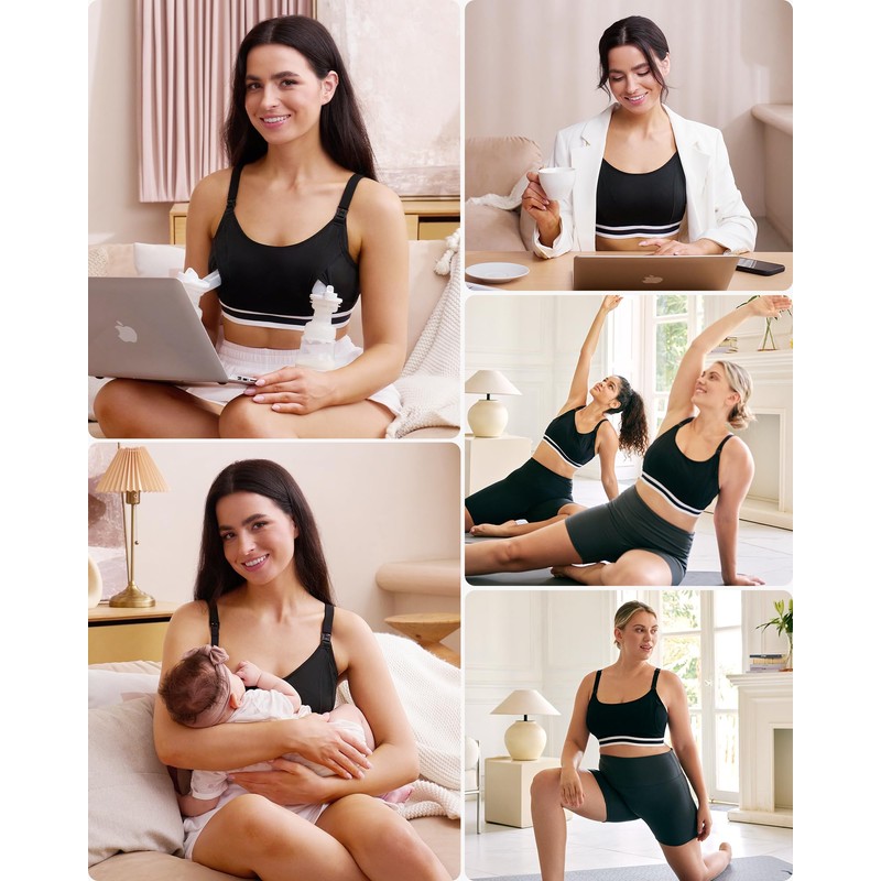 Momcozy Pumping Bra Hands Free, Breast Pump Bra with Widened Band, Pumping Nursing Bra in One, Adjustable Straps Black